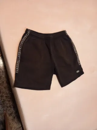 Conjunto deportivo de dos piezas. - Camiseta de manga corta con detalles blancos. - Pantalón corto con cordón. - Logo de Lacoste en ambas prendas.
