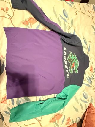 Chaqueta deportiva con un diseño moderno y llamativo. - Cremallera frontal completa. - Cuello alto. - Paneles de color contrastante en mangas y torso. - Logo de Lacoste bordado en el pecho.