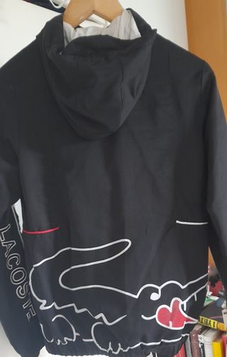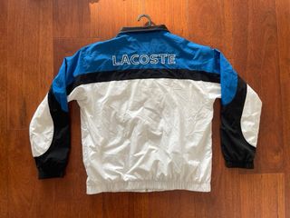 Chaqueta deportiva de la marca Lacoste. - Diseño con capucha. - Talla S - Precio negociable - Cierre de cremallera frontal. - Cordones ajustables en la capucha. - Logo de la marca bordado en el pecho. - Detalle de ribetes en contraste.