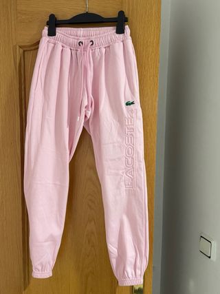 Pantalones de chándal Lacoste, talla XS pero talla como una M. Solo usado 2 veces. Impecable. Corte relaxed fit holgado. Algodón grueso. Logotipo bordado. 95€ costaron - Diseño deportivo. - Cintura elástica con cordón. - Bolsillos laterales. - Puños elásticos en los tobillos.