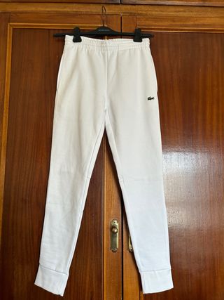 Pantalón de chándal de la marca Lacoste. - Color blanco. - Logo de la marca en el lateral. - El precio en tienda es de 150€ - lo vendo por perder el ticket y no poder cambiarlo de talla.