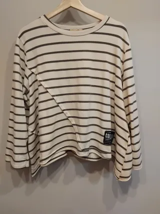 Conjunto deportivo de dos piezas. - Sudadera de manga larga con estampado de rayas. 56cm de sisa a sisa y 60cm de Larga. - Leggins