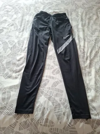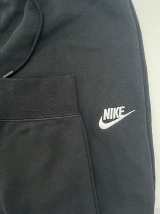 Pantalón deportivo Nike completamente nuevo en color negro y talla S. Cuenta con cordón ajustable en la cintura. Lo compré para mi hija y le va pequeño. Tiré el ticket al salir de la tienda. - Logo de Nike en la pernera. - Puños elásticos en los tobillos.