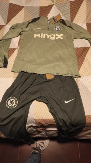 Chándal del Chelsea con diseño moderno y cómodo. - Media cremallera frontal. - Logo de Nike. - Escudo del Chelsea. - Inscripción 'trivago' en el pecho.