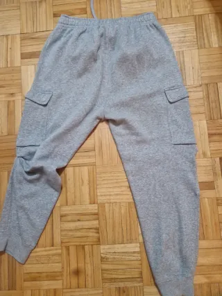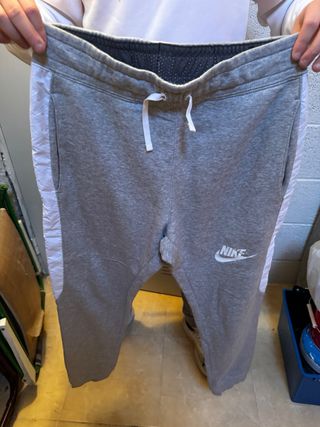 Pantalón de chándal Nike en color gris. Cómodo y versátil. Buen estado lo único que tiene una pequeña parte un poco desgastada del roce entre las piernas como se ve en las fotos, prácticamente ni se aprecia - Cintura con cordón ajustable. - Logo de Nike bordado en la pierna.