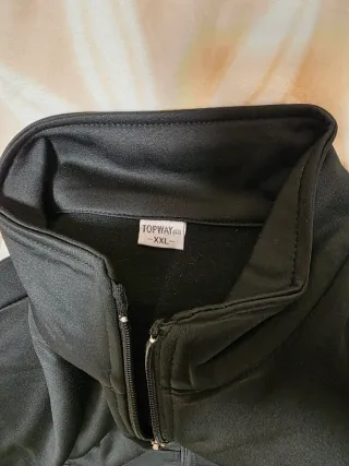 Conjunto deportivo de chándal con chaqueta y pantalón.Talla L pero no viene muy grande, para mi más para talla M.Los bolsillos tienen la cremallera estropeada pero no se nota para nada y una leve mancha casi no visible del mismo color del verde en una pequeña parte delantera blanca.Casi sin uso - Chaqueta con capucha y cremallera. - Diseño en bloques de color verde, blanco y morado. - Pantalón negro con logo. - Tejido ligero.
