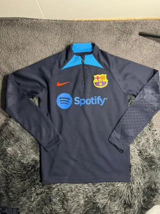 Conjunto de chándal de entrenamiento del FC Barcelona. - Diseño con cremallera parcial en la parte superior. - Escudo del FC Barcelona. - Logotipo de Spotify. - Detalles de diseño en las mangas.