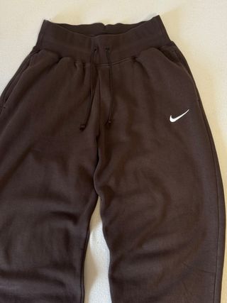 ¡Estilo baggy y ultra cómodos! Vendo estos pantalones de chándal Nike originales en un tono gris marrón chocolate. Tienen el corte oversize, con un ajuste holgado y cómodo. • Talla en etiqueta: XS, pero al ser oversize equivaldría a una S-M (la que uso yo, soy una 38 talla europea) • Ajuste real: Al ser diseño oversize, equivalen perfectamente a una talla S o incluso una M (dependiendo de cómo te guste de ancho). 97% algodón 3% elastina. • Estado: Impecables, muy cuidados. El tejido es grueso y el logo está perfecto. • Detalles: Cintura elástica con cordones y puños anchos en los tobillos. Ideales para un look urbano o para estar en