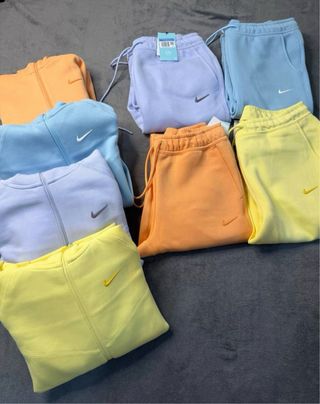 Conjunto de chándal de la marca Nike. - Chaqueta y pantalón. - Disponible en varios colores: beige, negro, azul y gris.