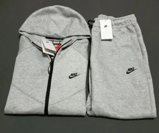Conjunto deportivo Nike Tech en color gris. - Sudadera con capucha y cremallera completa. - Pantalón de chándal con cintura elástica.