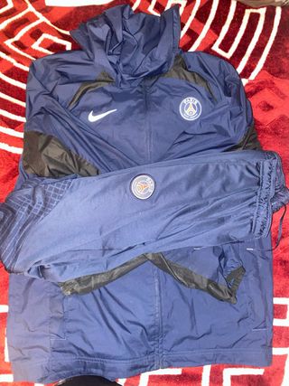 Conjunto deportivo de chándal del Paris Saint-Germain. - Chaqueta con capucha. - Pantalón a juego. - Diseño con detalles en negro. Precio negociable