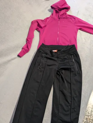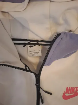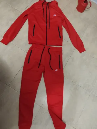 Conjunto deportivo de dos piezas de la marca Nike..pone que es una XL..lo acabo de comprar y me queda corto de mangas..más bien es una M - Chaqueta con cremallera completa y capucha. - Pantalón de corte recto.