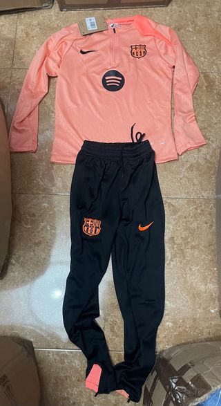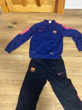 Chándal oficial del FC Barcelona. - Diseño deportivo con el escudo del club. - Logo de Nike. - Inscripción 'Barça' en las mangas. Por separado 25€ cada uno, 40€ los dos juntos