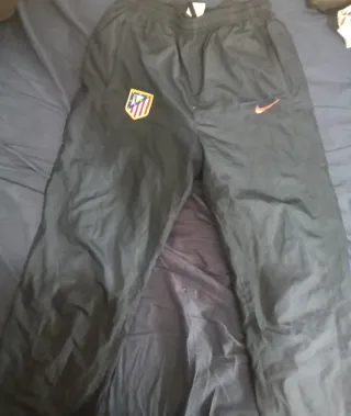 Pantalón de chandal del Atlético de Madrid temporada 20/21. En muy buen estado, sin manchas ni daños. Lo vendo porque me queda un poco grande. - Diseño con escudo del equipo y logo de Nike. - Detalles de rayas rojas en los laterales.