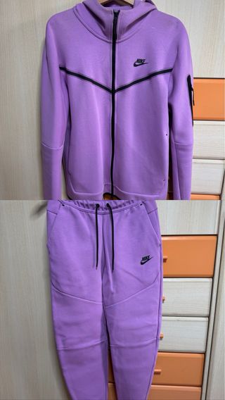 Chándal Nike Tech de color morado. Diseño moderno y cómodo. - Cremallera frontal completa. - Bolsillos laterales con cremallera. - Capucha ajustable. - Puños y dobladillo elásticos.
