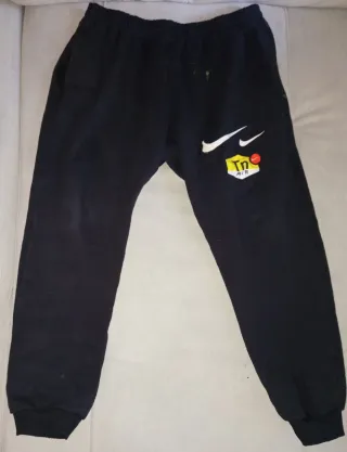 Chándal deportivo de la marca Nike en color negro. Ideal para entrenamientos o uso diario. - Cintura elástica con cordón. - Puños ajustados en los tobillos. - Logo de Nike bordado en la pierna izquierda.