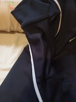 Chándal deportivo Nike en color negro. Ideal para entrenamientos o uso casual. - Cierre completo con cremallera. - Cuello alto. - Logo de Nike bordado en el pecho. PRECIO NEGOCIABLE