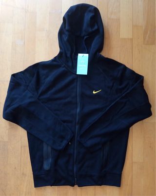 Conjunto deportivo Nike Tech Fleece. - Sudadera con cremallera completa y capucha. - Pantalones con cordón ajustable. - Bolsillos con cremallera. - Logo de Nike en amarillo.