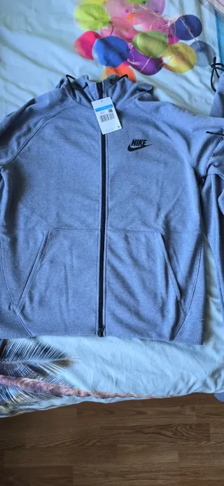 Chándal completo de la marca Nike en color gris. Ideal para el día a día .es original. Nuevo a estrenar con las etiquetas tiene talla M parte de arriba y L pantalon.da mucha talla es equivalente a una talla L o incluso xl si te gusta ajustado.Original comprado en nike .