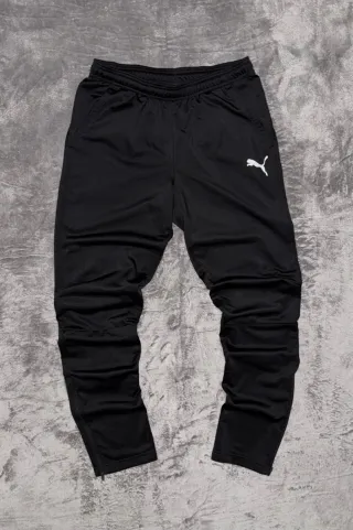 Pantalón de chándal Puma en color negro. En el Culo como se ve en la antepenunltima foto tiene un enganchon. De ahi su precio. - Logo de Puma en la parte frontal. - Cintura elástica.