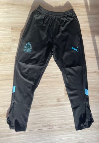 Pantalón de chándal del Olympique de Marseille en color negro. Se encuentra en muy buen estado. - Logo del OM en la pierna izquierda. - Logo de Puma en la pierna derecha. - Detalle azul en los laterales inferiores. - Cremalleras en los tobillos. Tambien para talla M. Precio negociable.