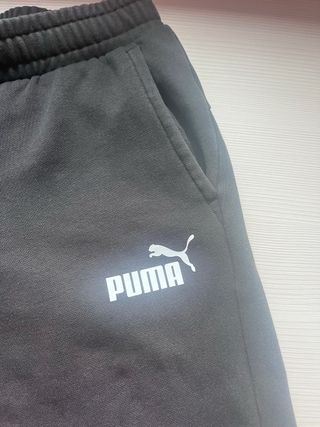 Pantalón de chándal de la marca Puma. - Color gris. - Logo de Puma en la pierna izquierda. - Logo de Puma en la parte superior derecha.