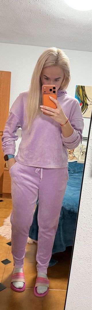 Conjunto de chándal de tejido suave y cómodo. Sudadera talla M Pantalón talla S - Sudadera con capucha. - Pantalón largo con cordón ajustable.