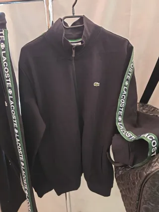 Conjunto deportivo Lacoste. - Chaqueta con cuello alto y cremallera. - Pantalón a juego. - Detalles de logo y banda lateral.