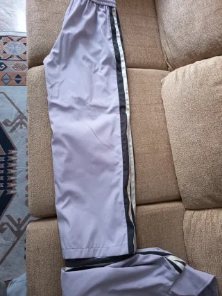 Es original de Adidas, pantalón con cremalleras en las piernas, dos bolsillos también con cremallera. ... Está impecable, puesto dos veces y pequeño, no tiene marcado ni rodilleras.