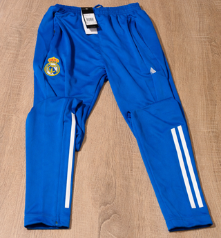 Chándal oficial del Real Madrid para la temporada 2025/2026. - Diseño deportivo con las icónicas tres rayas de Adidas. - Escudo del club bordado en el pecho. - Cremallera completa. - Tejido transpirable.