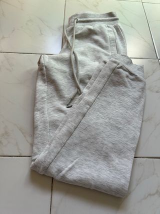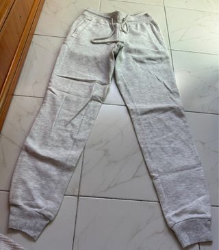 Chándal de la marca SoulCal & Co. en color gris. - Cintura con cordón ajustable. - Bolsillos laterales. - Puños elásticos en tobillos. - Pequeña mancha en la pierna izquierda. Estado: Excelente estado general, como nuevo. El tejido, la goma de la cintura y los puños están perfectos. ⚠️ Nota Importante sobre la Mancha: Tiene una pequeña mancha en la parte superior de una de las piernas (ver foto de detalle), que no he logrado eliminar con lavados convencionales. Por este motivo, el precio se ajusta considerablemente. Es ideal si tienes métodos para quitar manchas o si no te importa el detalle.