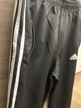 Chándal completo de Adidas, ideal para deporte o uso casual. Es un conjunto sin estrenar. - Chaqueta con cremallera completa. - Pantalón con cintura elástica. - Diseño clásico de tres rayas en las mangas y perneras.