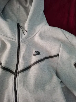 Chándal Nike Tech de color gris. Presenta un diseño moderno y cómodo. - Logo de Nike en relieve. - Cremallera frontal completa. - Capucha ajustable.