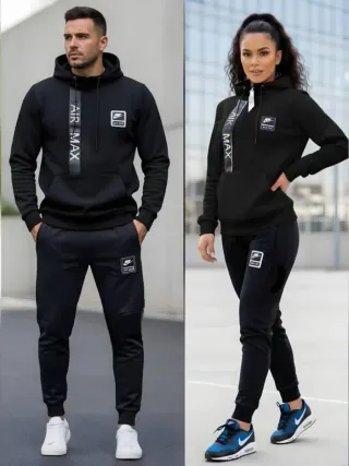 Conjunto de chándal con un diseño moderno y deportivo. - Chaqueta con capucha y cremallera completa. - Pantalón con cintura elástica. - Logos y detalles icónicos de la marca.
