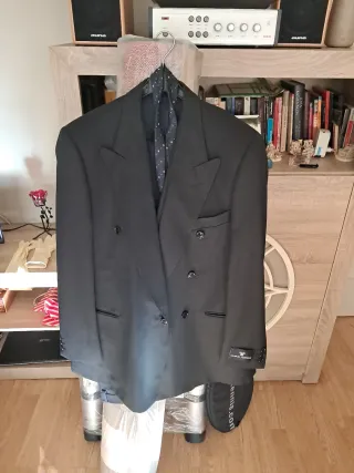 Medio chaqué azul marino.Chaqueta de corte clásico.Talla 52.Pantalón a juego el pantalón tiene una talla aproximada a una 42. El traje está nuevo,solo se ha usado una vez unas horas para una boda como padrino durante.Marca Giovanni Ricci. El pantalón tiene arreglos de dobladillo. y un contorno de cintura de aproximadamente 92 centímetros. Adjunto en las fotografías medidas y si tienes alguna duda puedes preguntarme acerca de medidas o lo que creas oportuno. El traje es bastante ligero cómodo suave y el tejido no se arruga fácilmente.