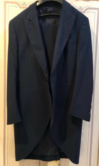 Chaqué ingles hecho a medida para talla M, 100% lana, azul marino, una puesta. Costó 1.100,00 €