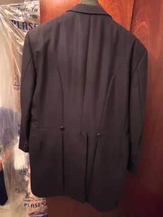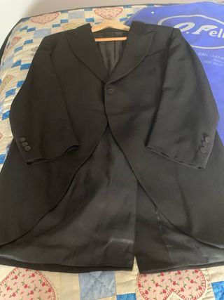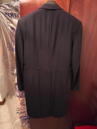 Elegante chaqué clásico de pura lana, ideal para eventos especiales. Se encuentra en perfecto estado. - Nada comparable con las birrias actuales. - Tejido de lana de excelente calidad. - Diseño clásico y atemporal. - Perfecto para ocasiones formales.
