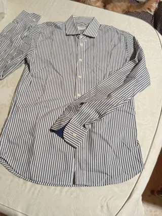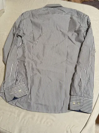 Camisa de rayas azul y blanco,a juego con la chaqu