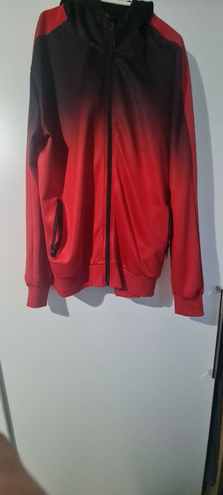 hola buenas vendo chaque de color rojo y negro en perfecto estado algo desgastado el pantalon tiene abujeros pequeñoa que nose nota nada y el brazo derecho tienes un abujero pequeño pero tampoco se ve a la vista gracias.