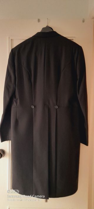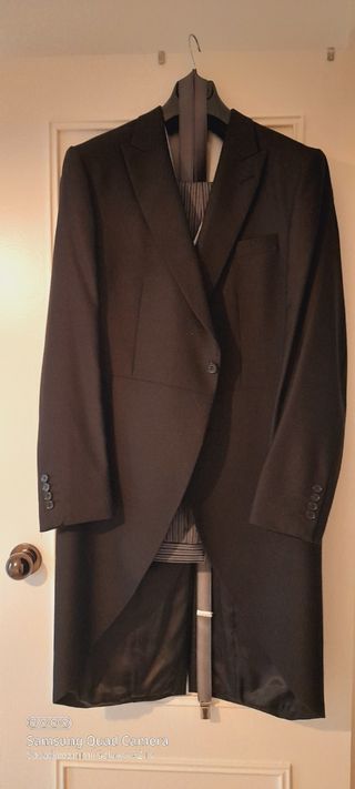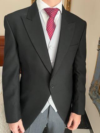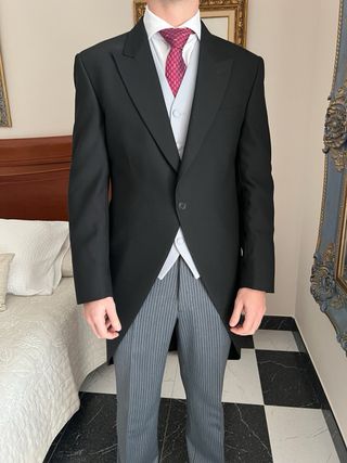 Un sólo uso. Perfectas condiciones. Se vende con el chaleco incluido , que fue comprado a parte . Pantalón de raya diplomática y chaqué de color negro . * La corbata y camisa no están a la venta.