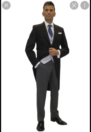 Traje de etiqueta para eventos especiales. Talla 52 un solo uso, completo Costó 500€ - Chaqué negro. - Chaleco gris. - Pantalón de raya diplomática gris.