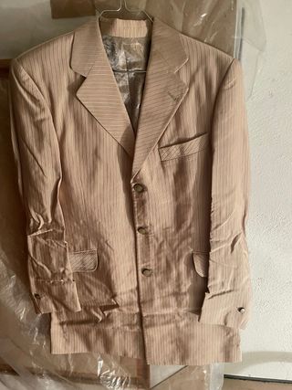 Vendo chaqué clásico que utilizó mi padre para el día de mi boda 😍 Leer bien: Tengo un solo pantalón marca “Roberto Bassi” talla 44 (se puede sacar y meter tanto de cintura como de ruedo) Una levita de la misma marca talla 50 y un chaleco de la misma talla en color azul cielo. He tenido que comprar otra levita porque esa no le quedó a mi padre. Es marca “Arax Gazzo” talla 56, con chaleco gris de dibujos negros (58), corbata y pañuelo. Si te interesa, puedes probarte ambas levitas y ambos chalecos y llevar el que te quede mejor. Vendo TODO por 200€ (pantalón más dos levitas más dos chalecos, uno a juego) un solo traje 150€