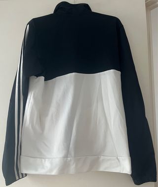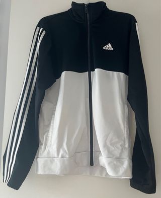 Conjunto deportivo de dos piezas. - Chaqueta con cremallera completa. - Pantalón con cintura elástica. - Diseño de tres rayas en mangas y perneras. Usado 1 vez