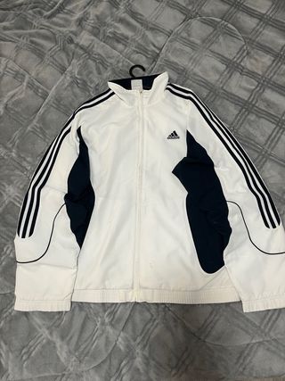 Chaqueta deportiva Adidas con un diseño clásico y moderno. - Mangas con las icónicas tres rayas. - Paneles laterales en contraste. - Cuello alto. Con algunas manchas, ver en fotos.