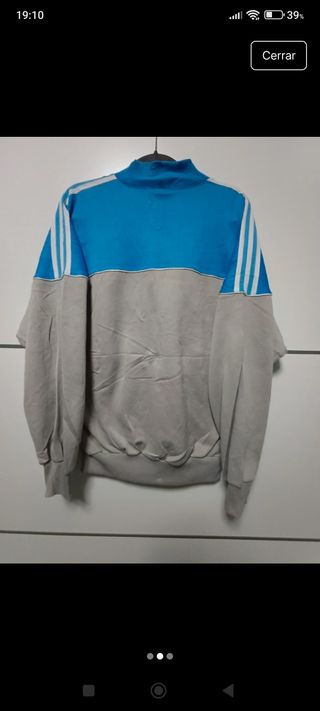 Adidas original Muy buen estado Tiene esas manchas que se enseñan en la foto Chaqueta deportiva con cremallera y bolsillos laterales Las tres rayas 54 de hombros 59 de axila a axila 64 de largo