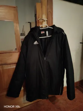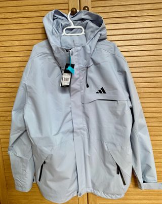 Chaqueta cortavientos Adidas con tecnología climacool. - Color gris con negro - Capucha integrada regulable - Cierre frontal con cremallera. - Bolsillos laterales con cremallera. - Dice 3XL pero es un XL - Sin estrenar con etiqueta, la vendo porque me equivoqué con el talle al comprarla