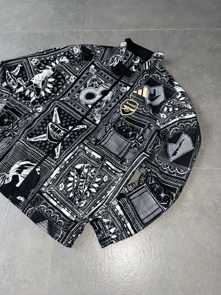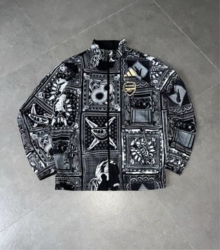 Chaqueta de edición especial Adidas x Arsenal, diseñada en colaboración con Ian Wright. Presenta un llamativo estampado integral. - Diseño con múltiples paneles y gráficos. - Cierre de cremallera frontal. - Cuello alto.