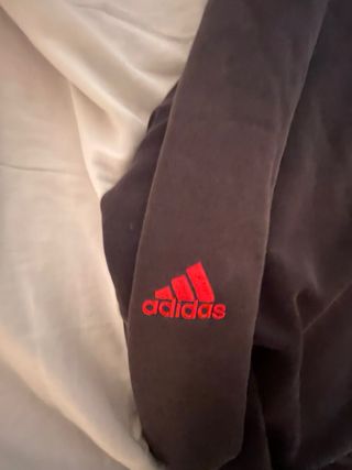 Chaqueta deportiva con diseño llamativo y detalles de la marca. - Diseño con franjas en las mangas. - Cierre completo con cremallera. - Logo de Adidas y escudo del equipo.