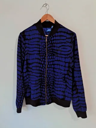 Chaqueta deportiva con un llamativo estampado. - Diseño con estampado de escamas. - Cremallera frontal. - Cuello y puños elásticos.