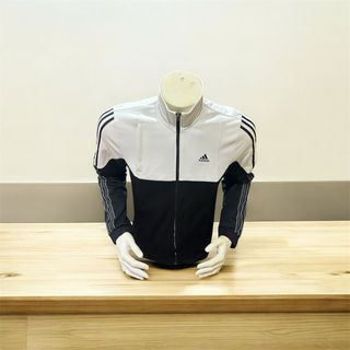 Chaqueta deportiva clásica de Adidas. - Diseño con las tres rayas icónicas en las mangas. - Logo de Adidas en el pecho. - Cremallera frontal completa. - Puños y cintura elásticos.